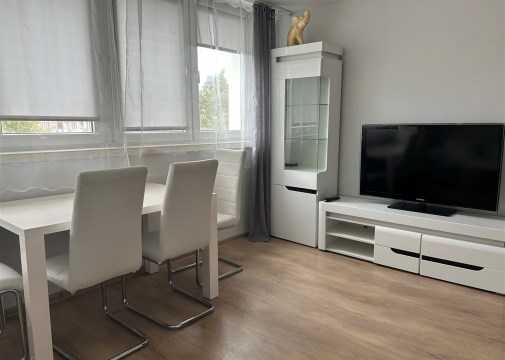 Mieszkanie o powierzchni użytkowej 61,8m2, usytuowane w na 4 piętrze wysokiego bloku na osiedlu Kopernika. Składa się z pokoju dziennego, 2 sypialni, oddzielnej, widnej kuchni, przedpokoju oraz łazienki razem z wc. Mieszkanie umeblowane i wyposażone jak na zdjęciach. Kuchnia w zabudowie meblowej wraz ze sprzętem AGD. Łazienka w glazurze, z kabiną prysznicową, wyposażona w pralkę. W salonie narożnik, stół z krzesłami, szafka RTV oraz telewizor. W przedpokoju oraz sypialni znajdują się dwie duże szafy w zabudowie. Mieszkanie gotowe do wprowadzenia. Najem bez zwierząt, umowa najmu okazjonalnego zawierana na rok.